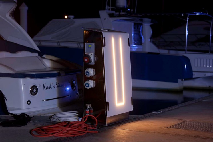 Erogatore in acciaio inox 316L e plexiglass, disegnato espressamente per Jumeirah Beach Marina a Dubai che desiderava un design unico e customizzato. La cover in plexiglass fa sì che la superficie superiore non si arroventi eccessivamente al sole e ha permesso di integrare un'illuminazione scenografica a led. Nella stessa serie abbiamo progettato colonnine antincendio e box multipli di distribuzione.